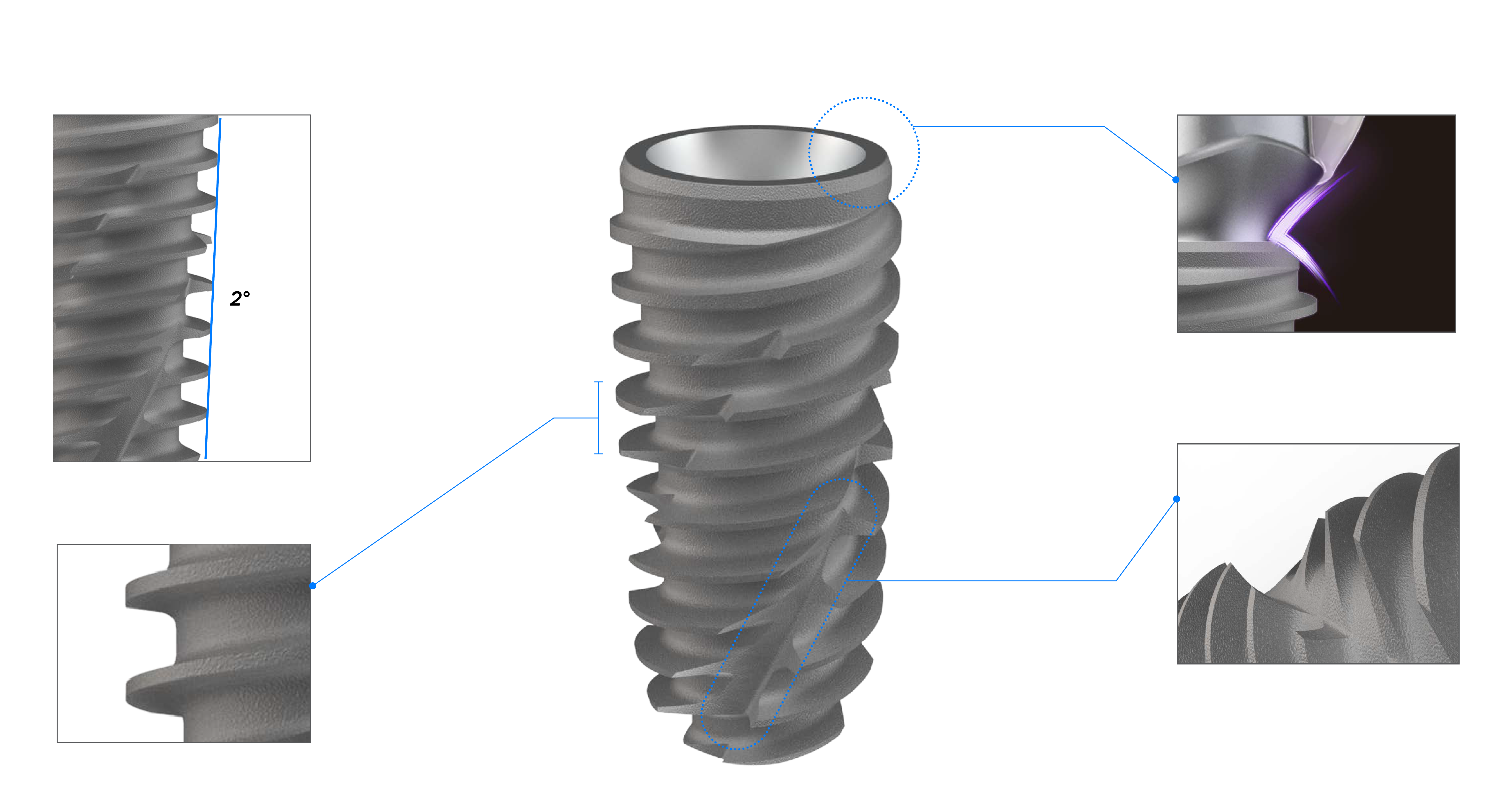 Superior S.L.A. surface treatment technology for fast and stable osseointegration.